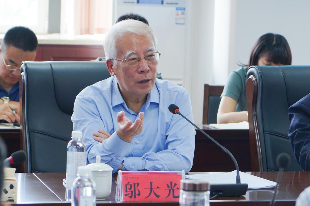 于光辉校长代表学校致欢迎辞,对邬大光教授的莅临指导表示热烈欢迎和诚挚感谢。于校长介绍了我校在办学理念、发展历程、师资建设、基层党组织与思政课建设等方面的基本情况,重点阐述了学校持续推进学科专业优化与人才培养模式改革的举措与进展。他强调,学校当前正处于内涵提升与特色发展的关键时期,高度重视高质量办学体系建设,期待借助本次座谈进一步凝聚共识、厘清方向,为学校高质量发展注入新动能。