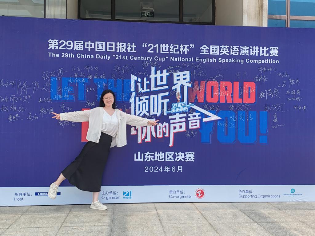 此外,她还积极参加创新创业类竞赛,在中国国际大学生创新大赛(互联网+)山东省总决赛中夺得银奖,项目名称为《旧辞新话,文育青衿——基于VR技术的中小学古诗词创新性教育》。凭借着对语言的热爱,她还在汉语类竞赛中实现了无畏的盛放与自我的圆满,获得全国大学生语言文字能力大赛全国决赛二等奖(15%)。