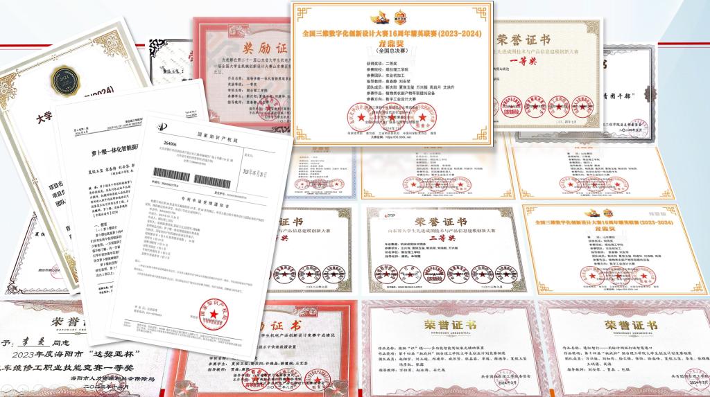 备赛的日子虽然辛苦,但他却乐在其中。为了优化一个结构,他能改上几十版方案;为了让作品更实用,他反复研究现实需求;为了答辩完美发挥,他一遍遍练习表达。功夫不负有心人,各种荣誉接踵而来:机电产品创新设计大赛省一等奖,全国3D大赛特等奖,先进成图大赛省个人一等奖,轻量化创新设计大赛全省第七......奖项多到列不完!